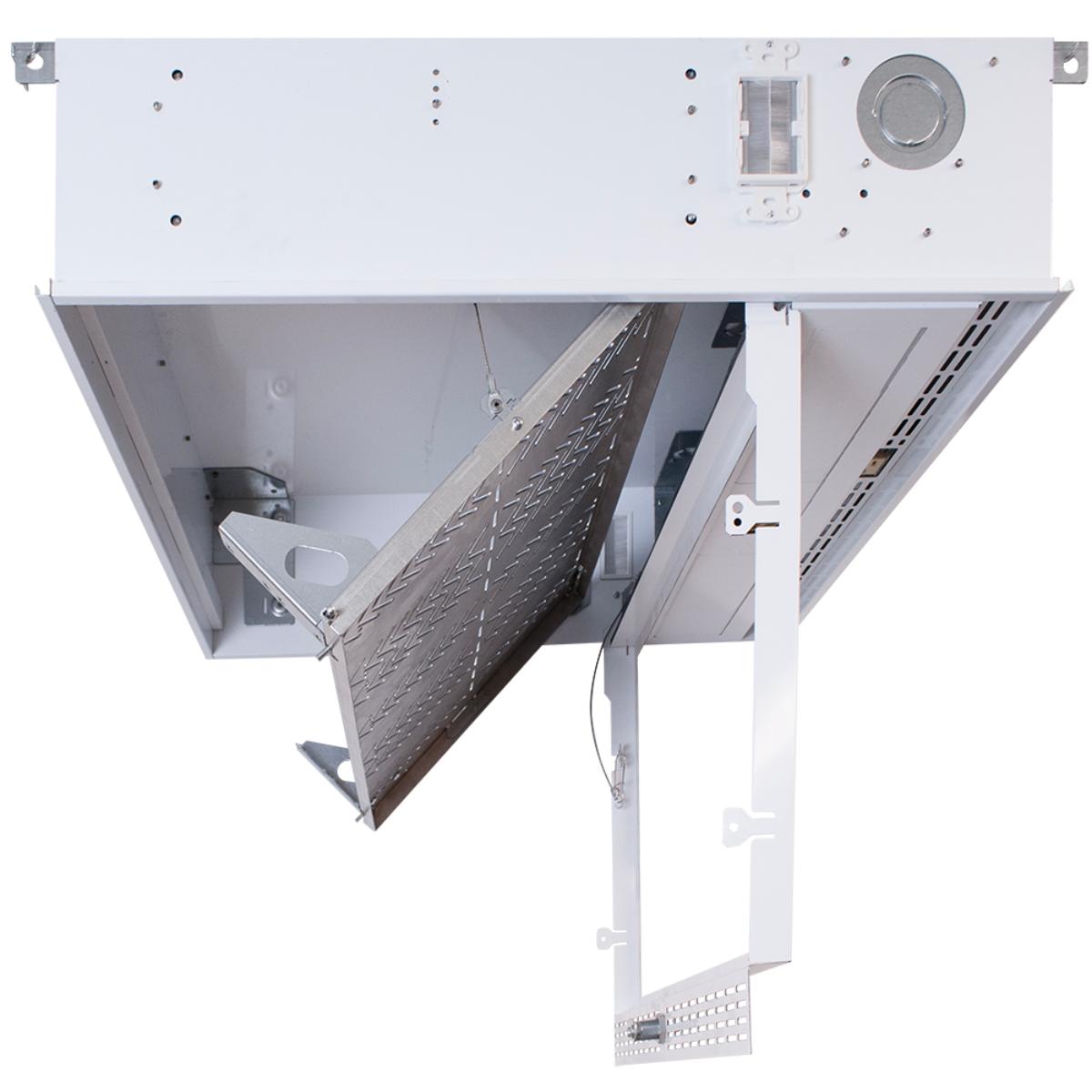 We offer an optional decorative metal plate for the access door, eliminating the need for ceiling tile. The access door and hinge have been streamlined to allow for easier removal and installation of the door with an attached safety cable quick disconnect.