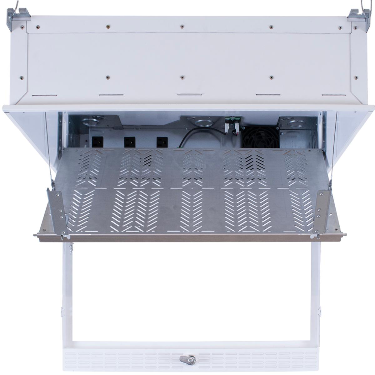 Introducing the next generation ceiling boxes, the CB-22+ Series. The entire line of boxes has been reimagined with exciting new features. The enclosures now have integrated threaded rod mounts to aid in an easy installation. A larger removable dual-tilting equipment shelf with repositionable 2-RU rack rails will facilitate ease of access and visibility. The new lockable secured cam lock access door provides security and easy access to the equipment in the box.