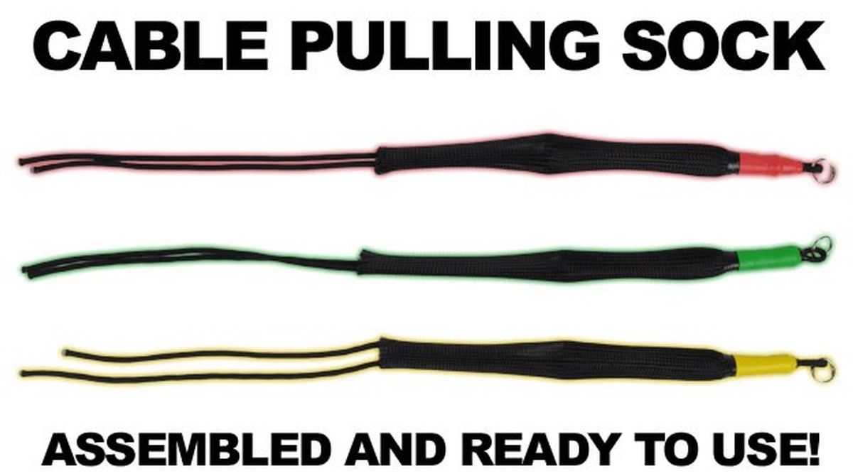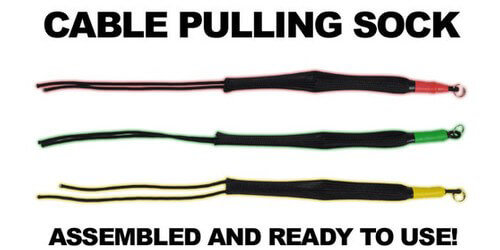 The FSR DR-SOCK is a cable pulling tool, use the DR-SOCK to eliminate the need of damaging connector ends and make pulling cables easier. The opening can be used on any cable that will fit in the 1.25" opening, the cable provides 3 layers of protection on the connector.