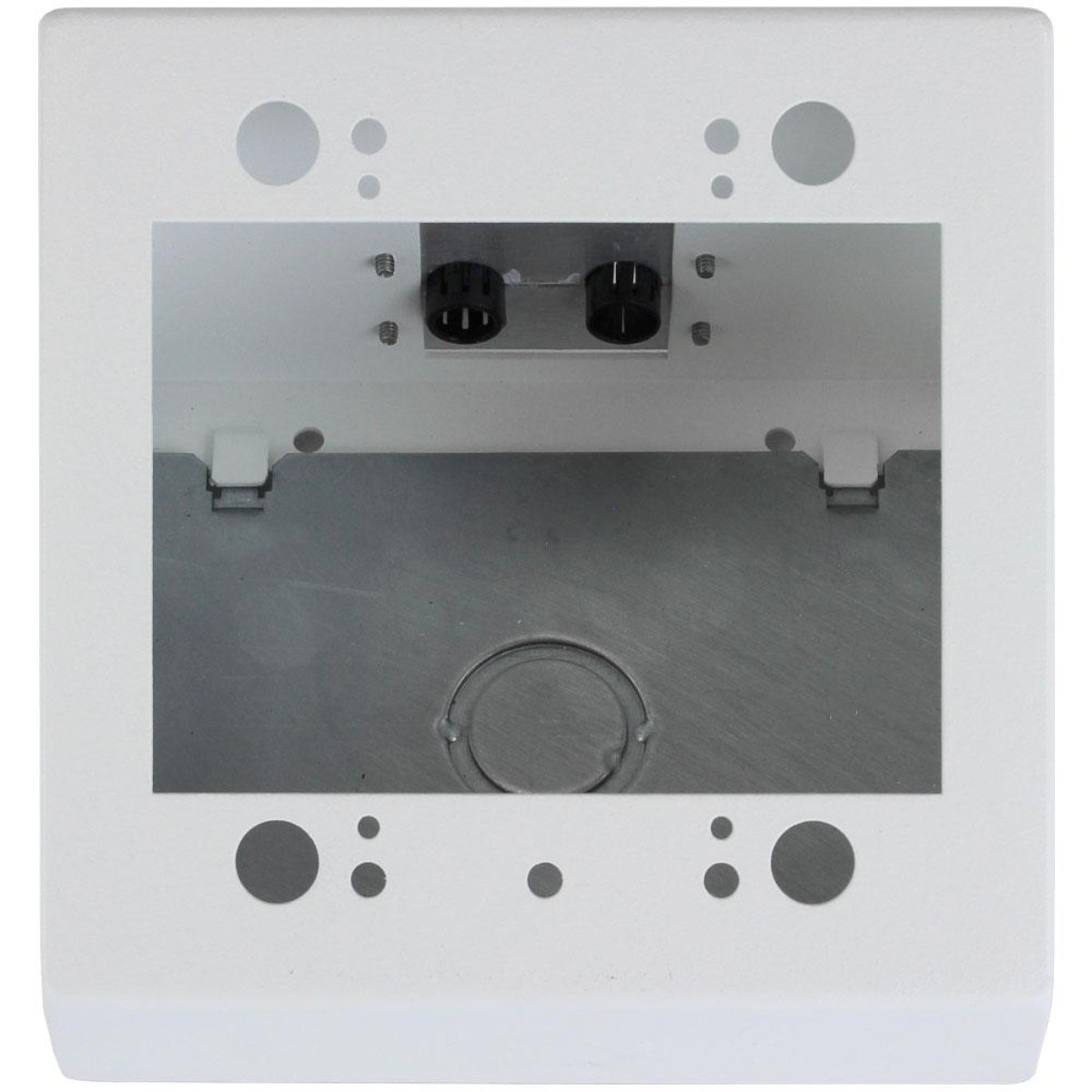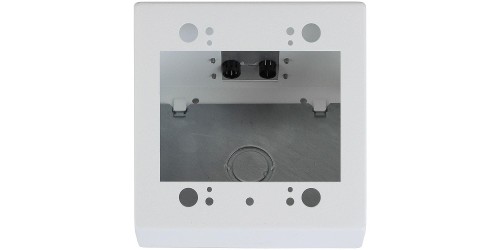 This white DSKB is a 2 Gang Desktop Box with an IPS Grommet Kit.