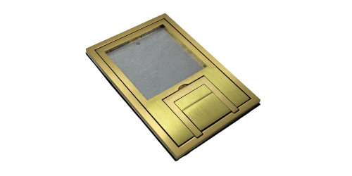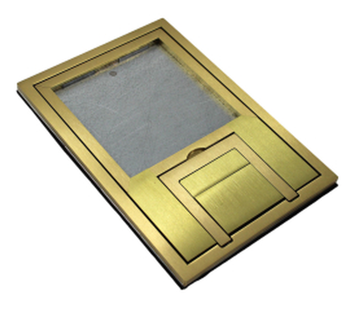 The FSR FL-200-BSQ-C is a brass cover designed for the FSR FL-200-3 or FL-200-4 concrete floor box. The cover is scrub water rated and features a 1/4" square edge so you can insert carpet, tile, or wood to match the surroundings. The U shaped handle makes lifting the cover off for easy access to your connections. This cover when paired with the FL-200 floor box is an ideal solution for any room that needs a minimal amount of connections while still having a high quality floor box and cover solution.
