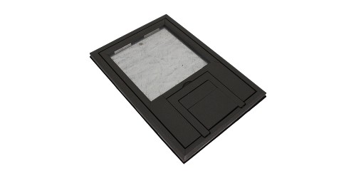 The FSR FL-200-PLP-GRY-C is a painted gray color cover designed for the FSR FL-200-3 or FL-200-4 concrete floor box. The cover features a 1/4" beveled edge so you can insert carpet to match the surroundings. The U shaped handle makes lifting the cover off for easy access to your connections. This cover when paired with the FL-200 floor box is an ideal solution for any room that needs a minimal amount of connections while still having a high quality floor box and cover solution.
