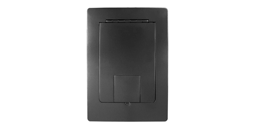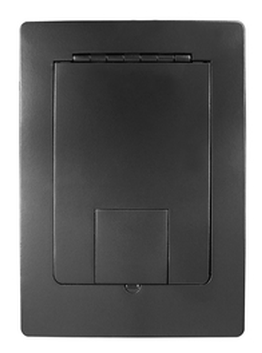 The FSR FL-200-PTBLK is a black cover designed for the FSR FL-200-3 or FL-200-4 concrete floor box. The cover is scrub water rated and features a 1/4" square edge so you can insert carpet, tile, or wood to match the surroundings. The U shaped handle makes lifting the cover off for easy access to your connections. This cover when paired with the FL-200 floor box is an ideal solution for any room that needs a minimal amount of connections while still having a high quality floor box and cover solution.