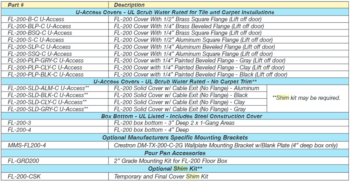 - Cover for FSR FL-200-3 or FL-200-4 floor box