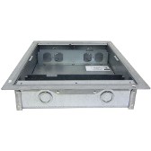 The FL-540P-2.25 floor box is designed for raised access carpeted floors.This floor box provides a practical solution for cable storage while maintaining easy access. The lift off section of the cover allows full access to the internal cables and connector plates. A smaller hinged trap door folds back to create the cable exit. Cables can be stored within the box when not in use, allowing unencumbered travel over the floor. The sturdy drop-in floor lip supports the unit and installs flush with the floor.