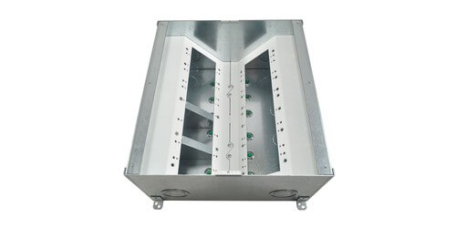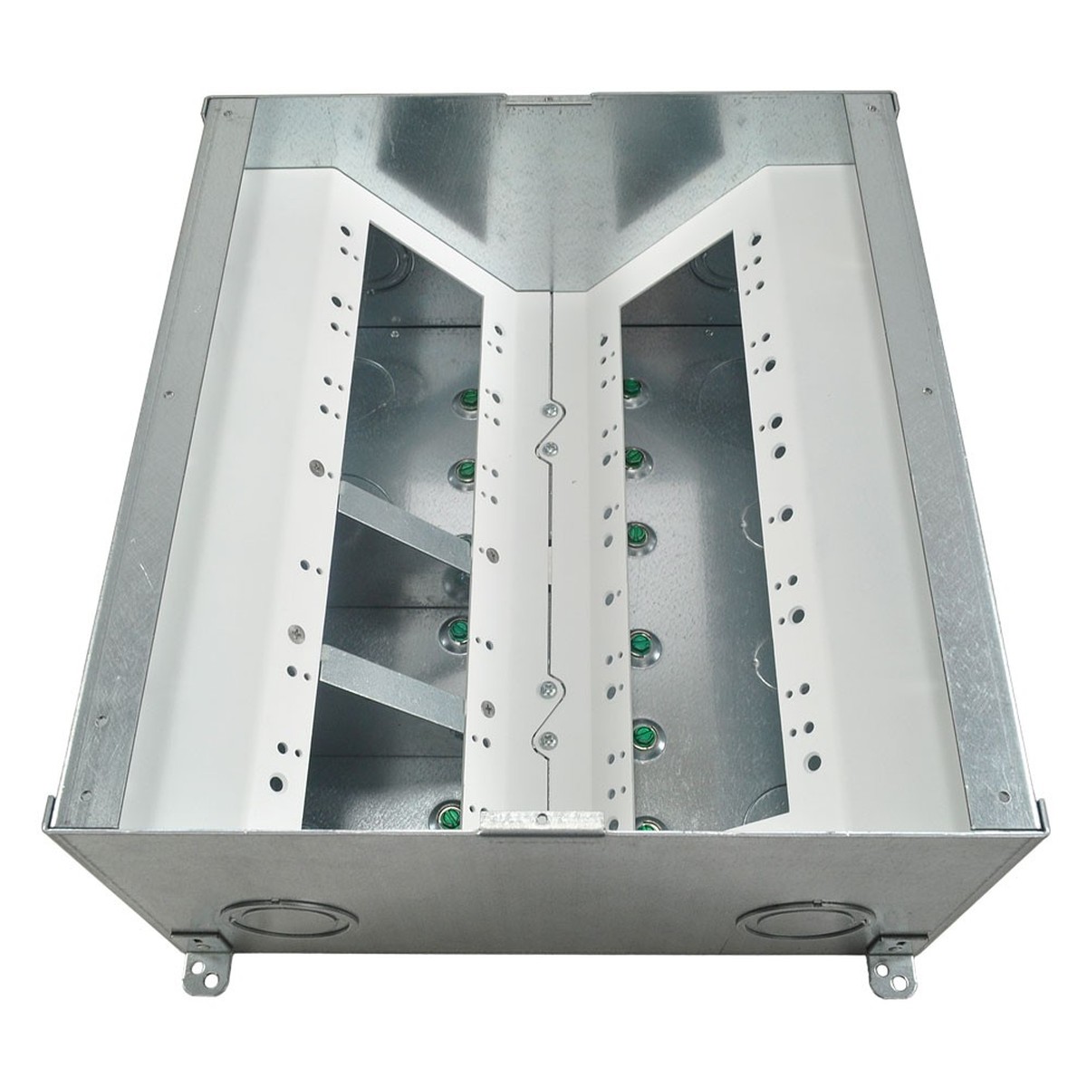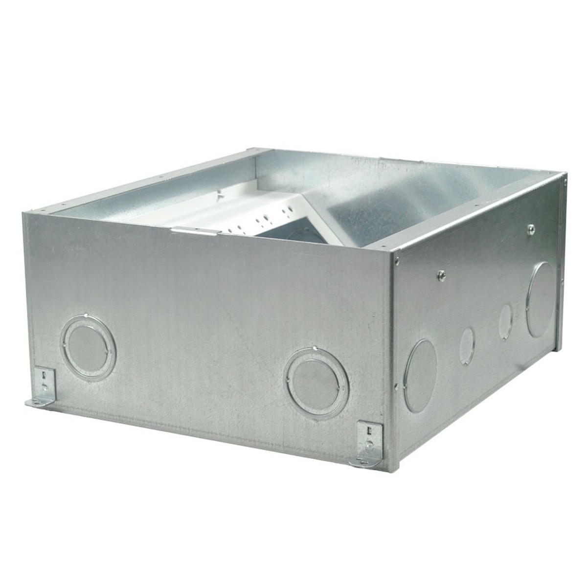 The FSR FL-600P-6-B is a 6" deep floor box with 12 gang spaces. This floor box can be used in many areas including carpet, tile or wood covered floors over poured concrete applications. This floor box has plenty of space to fill your power, audio, video, and data needs. The internal brackets can be arranged to meet your specific needs. A cover must be purchased separately, there are several options to choose from including integrated carpet edging, flat covers for non-carpeted bare floor applications and different finishes.
