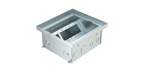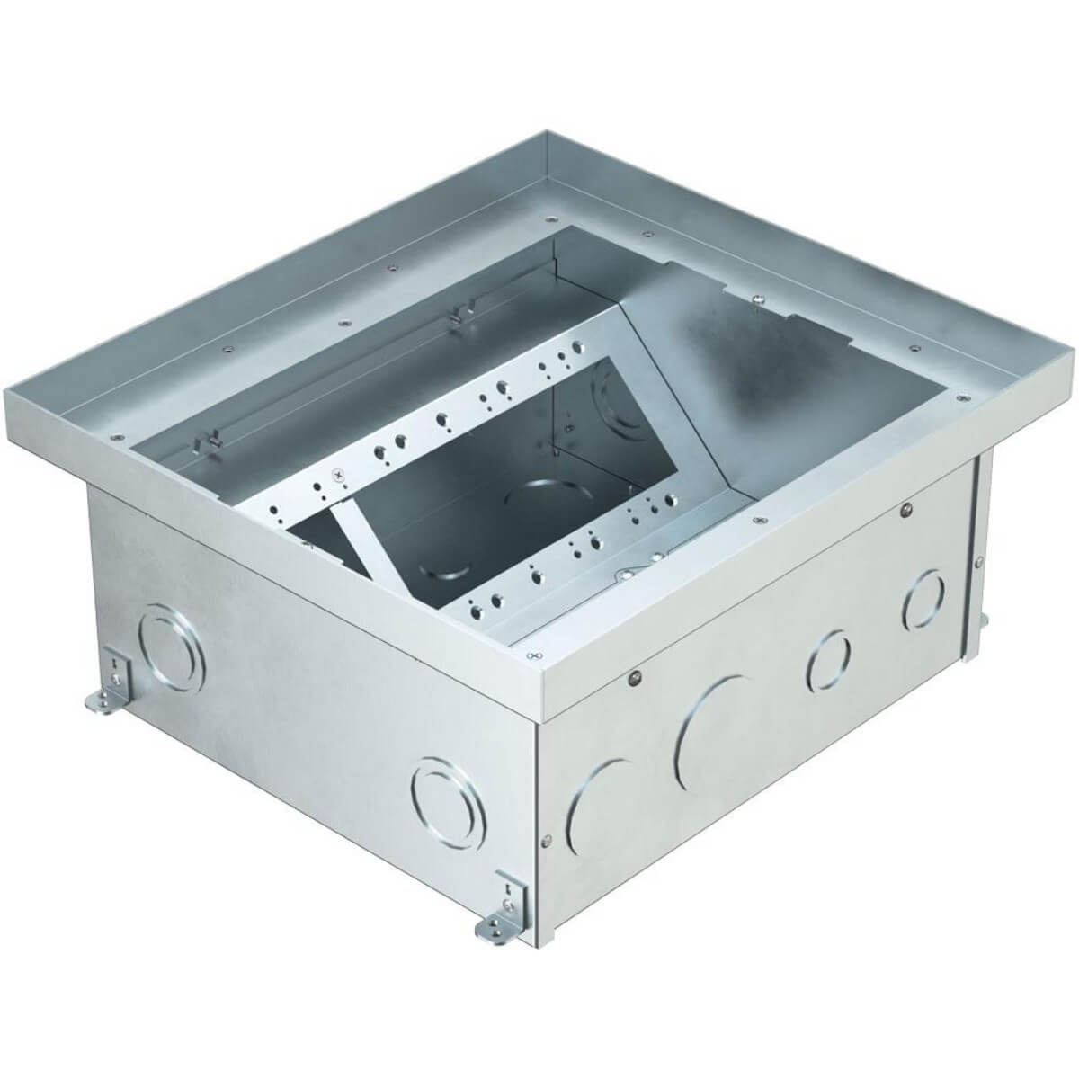 The FLH6-65-7 floor box bottom is a 12-gang transformable box bottom. The internal brackets can be arranged to provide numerous options for both high and low-voltage standard gang openings making it the most flexible and easiest to install floor box available. Removable center dividers make passing cables through the various compartments a snap.