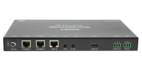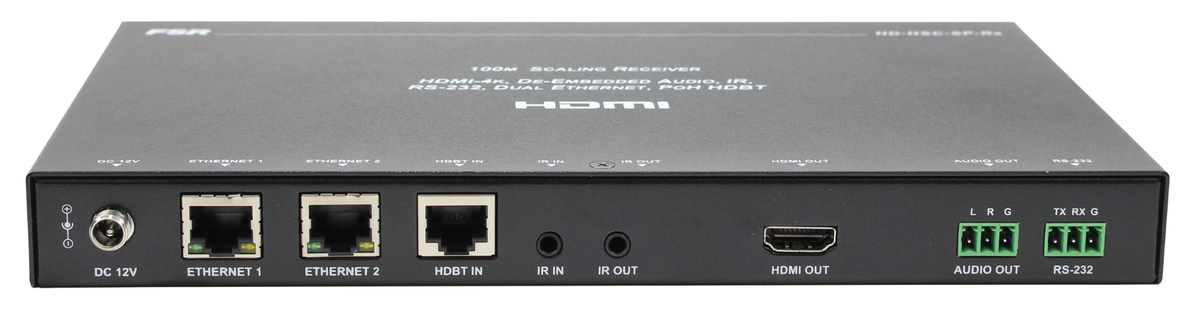 The HD-HSC-SP-Rx by FSR is a HDBaseT HDMI 2.0 Scaler Receiver. It can receive HD video (up to 4k@60hz), audio, bi-directional control (IR & RS-232), Ethernet, and power all via a single shielded Cat-6A cable out to 328', making it a true HDBaseT 5-play device. The built-in scaler on this device is HDMI 2.0 and HDCP 2.2 compliant and can be remotely controlled.