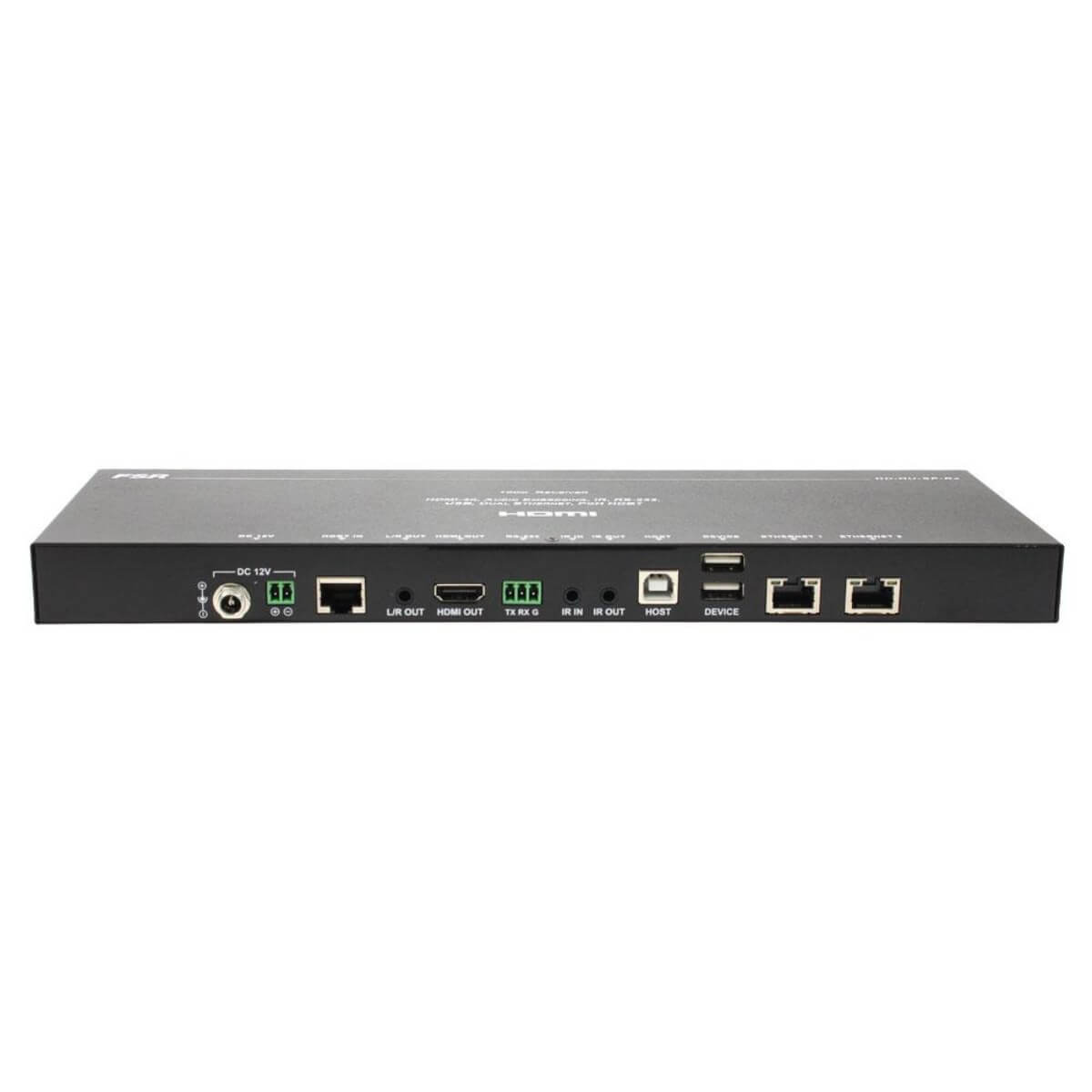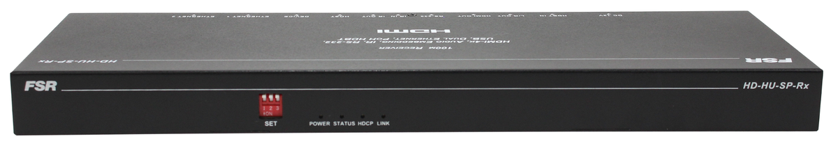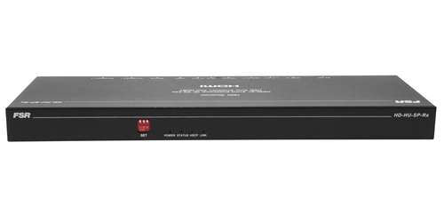 The FSR HD-HU-SP-Rx is a HDMI/USB over HDBaseT 2.0 Receiver that can accept signals from up to 328' away. The HDBaseT 2.0 input on this device is a true HDBaseT 5-Play input, meaning that it receives HD Video, Audio, Bi-Directional RS-232 Control, Ethernet, and Power all via 1 Cat-6A shielded cable from the compatible transmitter up to 328'. The HD-HU-SP-Rx is a perfect solution where remote users may want to control PC sources with keyboard and mouse, interactive display operation, data transmission or USB streaming devices.