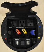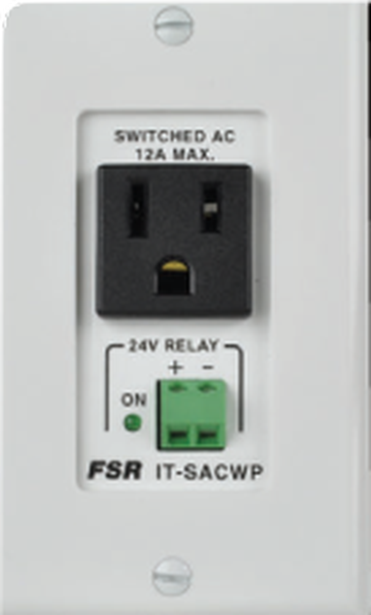 The FSR IT-SACWP is a 24 Volt wall plate that provides power and remote switching to power your flat panel or projector, this wall plate is used when your panel is not going to be used directly at the your table where your HuddleVU system is located.