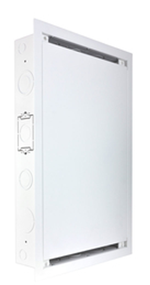 FSR introduces the new PWB-320XL-ESK, a large, open wall box designed to fit 16” vertically and 24” horizontally on center stud bays. This flush mount box simplifies AV and IT installations by providing space for routing cables, AC connections, and digital media products mounting in 3” or 4” thick walls. The PWB-320XL-ESK is punched in four locations with FSR’s Triple Play Mounting Solution, which provides three different options for mounting conduit, cabling, plates, and back boxes to wall boxes.