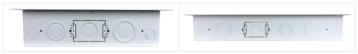 FSR introduces the new PWB-323XL-BX, a large, open wall box designed to fit 16” vertically and 24” horizontally on center stud bays. This flush mount box simplifies AV and IT installations by providing space for routing cables, AC connections, and digital media products mounting in 3” or 4” thick walls. The PWB-323XL-BX is punched in four locations with FSR’s Triple Play Mounting Solution, which provides three different options for mounting conduit, cabling, plates, and back boxes to wall boxes.