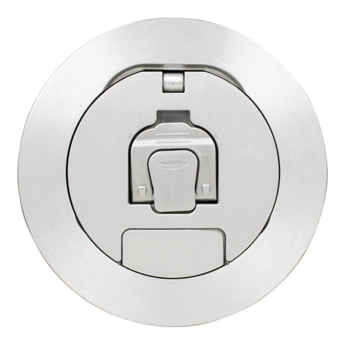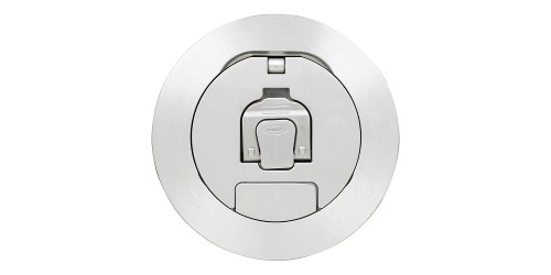 The 4" brushed aluminum SmartFit cover has a 0.12 Inch Thick Cover Flange, which is ADA Compliant. The entire cover door swings open 180° and the two smaller cable access doors fold down for cable egress while the cover door is secure.