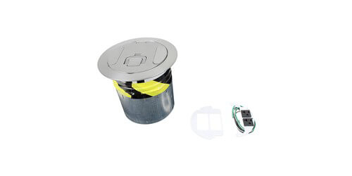 Includes: 6” floor fitting, Dual Decora opening subplate, Dual 20A pre-wired AC outlet subplate, Cover Assembly, and Junction box.