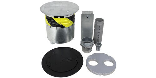 Includes: 6” floor fitting, 2" conduit fitting for data and AV, 3/4" conduit fitting for power, Cover Assembly, and Junction box.