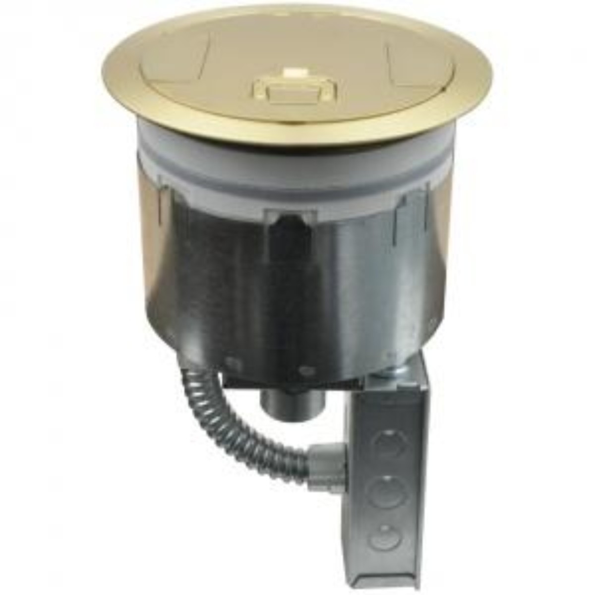 8" Poke-Thru Floor Box w/ 1000lb Cover & 2 Sub-Plates, Brass