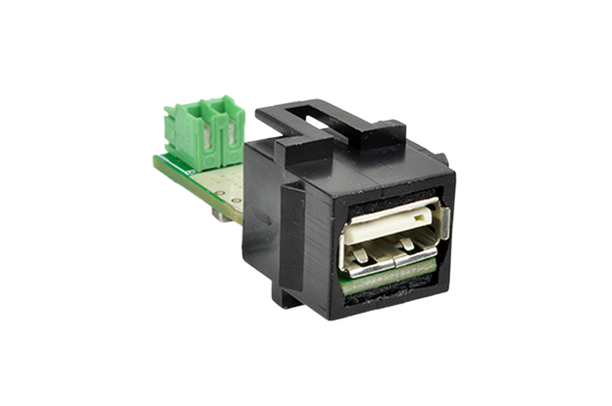 The FSR SS-USB-CHRG is a black USB snap-in designed for charging, includes power supply.