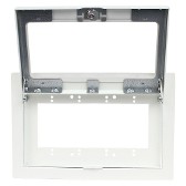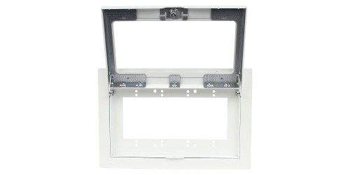 The WB Recessed 4 Gang Mounting Plate with a plastic cover is an effective way to secure and protect wall plates and data plates with multiple network connections.