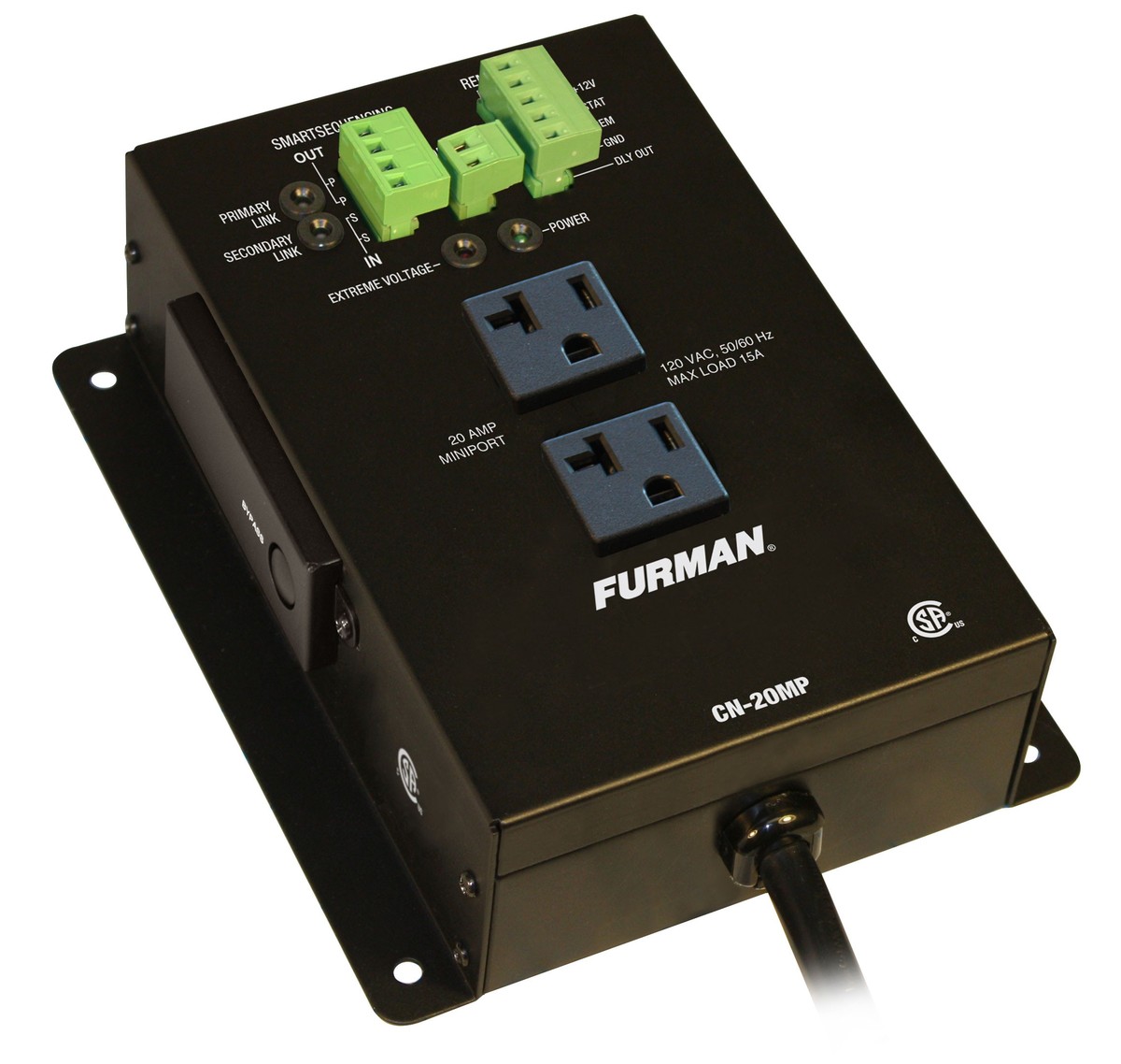Furman's CN-20MP 20A Remote Duplex, EVS, SmartSequencing Extender with 10' Cord provides flexibility to any installation scenario by extending the benefits of SmartSequencing to electronics outside of the equipment rack. This product allows the user to daisy-chain units and fully control them via Furman's exclusive SmartSequencing technology.