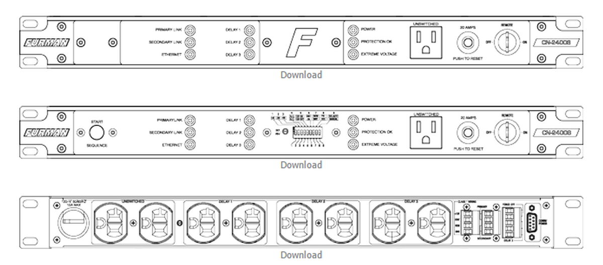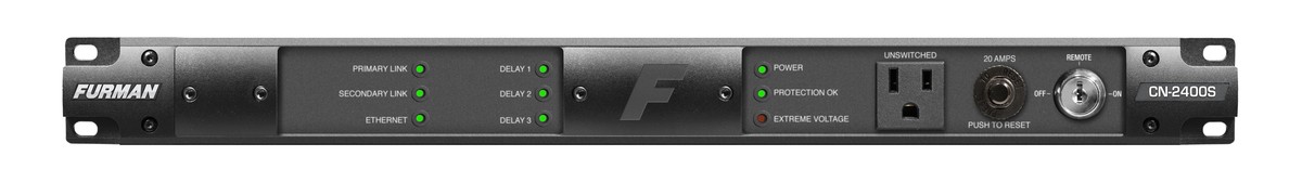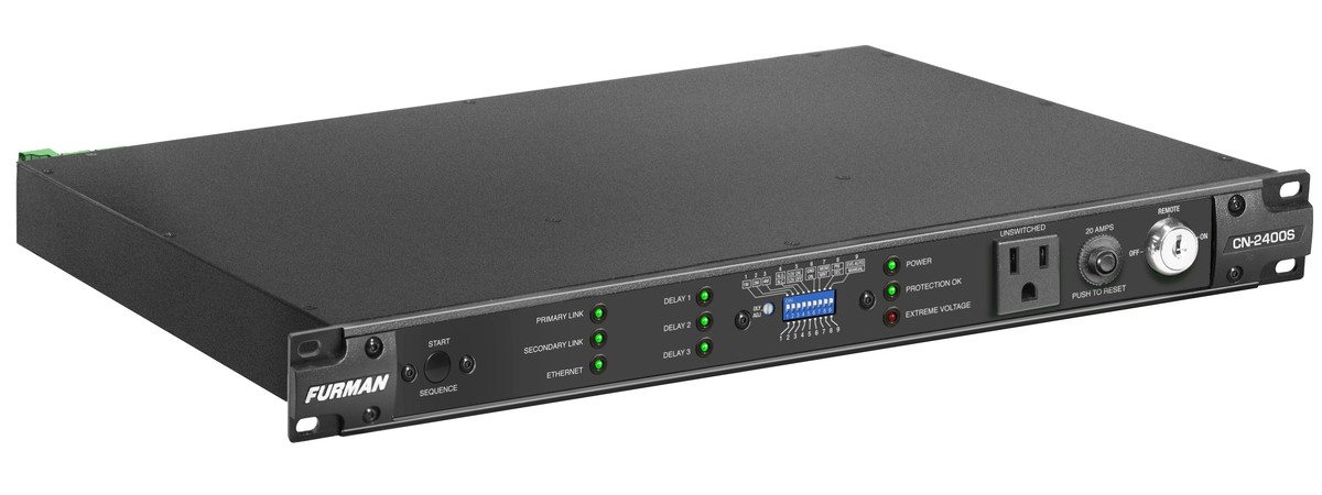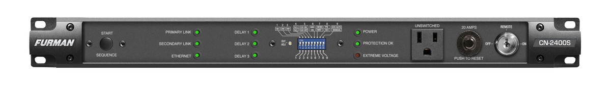 The CN-2400S is one of the first products to feature Furman's exclusive SmartSequencing which allows large AV systems to safely sequence power up or down bidirectionally via a simple push of a button or turn of a key from a single control point. This technology enables a primary unit to control, communicate, and sequence multiple secondary units. The units can be connected by current loop more than 1,000 feet away and are also backward compatible with Furman's legacy sequencers.