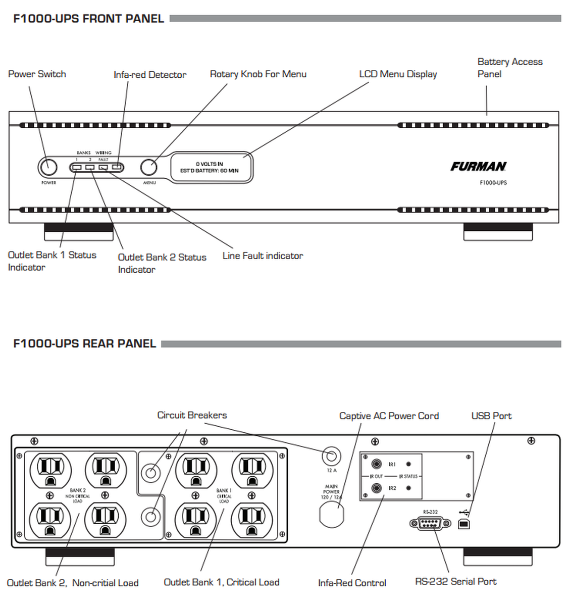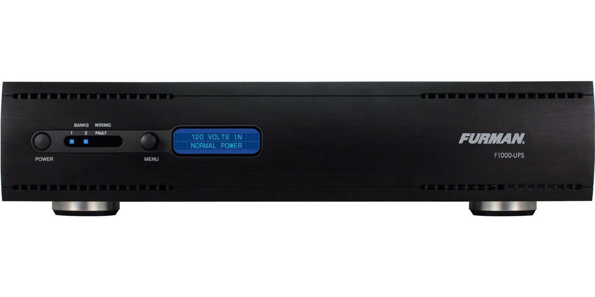 The Furman F1000-UPS 1000VA 2RU Rack Mount Uninterruptible Power Supply with battery backup/power conditioner, AVR, RS-232, USB Interface. This 8 outlet UPS is designed for audio/video professionals and home theater aficionados. Constructed with many revolutionary technologies (SMP, EVS, LiFT...), this rack mount will provide uncompromised AC protection and purification for years to come.