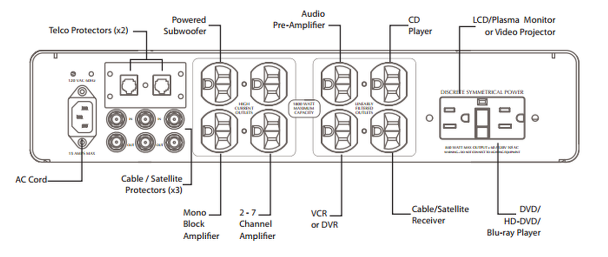 - Output - 11 - 15 Amp RMS * (maximum, all outlets combined - continuous)