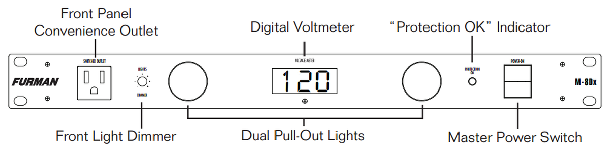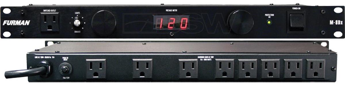 It comes with two retractable, incandescent lights and a digital voltage meter. The lights help you read your levels in darker AC settings (e.g. in closets, on stage, in studios) and a dimmer knob allows the user to adjust lamp brightness, while a three-digit, red LED voltmeter helps you monitor incoming voltage. This Furman power conditioner is perfect in applications such as recording, pro audio, instrument rigs, as well as with DJ equipment. The M-8DX has 130 VAC overvoltage shutoff protection and is backed by a three-year warranty from Furman.