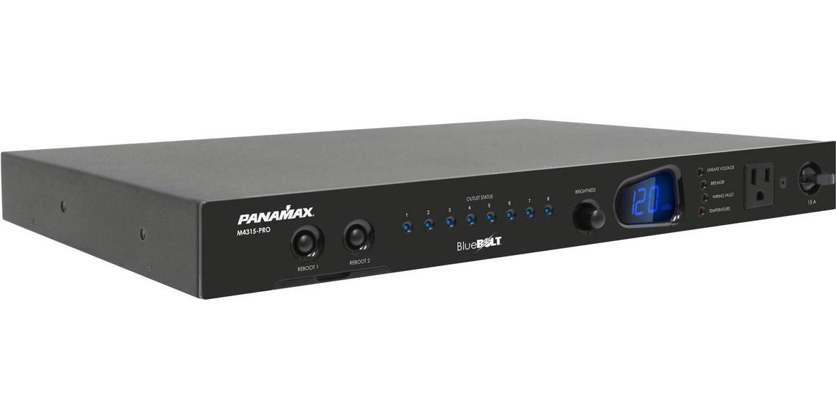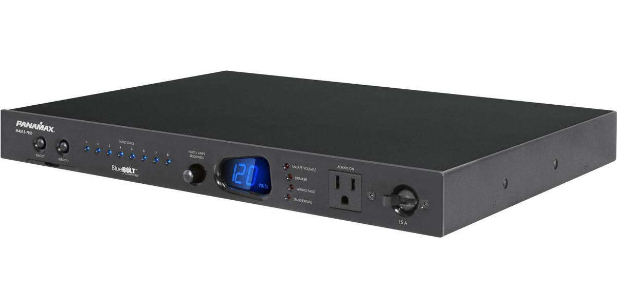 The Furman M4315-PRO 15A BlueBOLT Power Conditioner comes with 8 Individually Controlled Rear Outlets and 1 Front Panel Outlet. All eight rear panel outlets can be controlled individually and are grouped into four filter-isolated banks. This advanced device has top of the line Linear Noise Filtration (LiFT), catastrophic surge protection, and Automatic Voltage Monitoring (AVM). The filtration technology (LiFT) suppresses linear AC noise evenly across a very wide bandwidth. Resulting in a lower noise floor for the user’s audio system, better picture on video displays, and protection from the possibility of data corruption or loss. It dramatically reduces differential AC noise while feeding the users devices clean, filtered AC power.