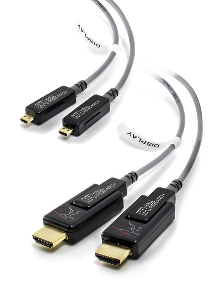 The CHD-DE15 50' 4K Javelin Active Plenum HDMI extension cables from Hall Research offers the latest in optoelectronic technology to carry HDMI signals beyond the common limitations of copper cables. The advantage with this HDCP compliant cable is its detachable or even removable HDMI connector ends. The small micro HDMI sized connector can easily be pulled through small holes, pipes or conduits with the included pulling capsule.