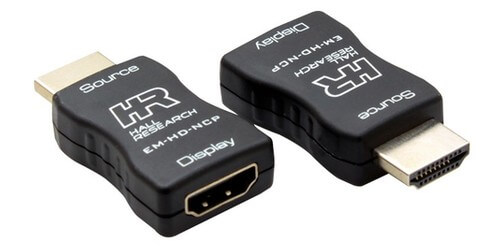 It is a tiny device that plugs to the HDMI port on your source device and you simply plug the cable from the monitor to this unit. The EM-HD-NCP is powered from the source itself. Hall Research has pre-programmed many standard resolutions into the emulator, so chances are you will have a perfect video right off the bat. But if you need to specifically program the EDID from a unique LCD into the Emulator, that is possible too with the use of USB-EDID-PRO2(sold separately).