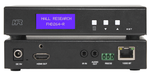 This Hall Research sender provides a local HDMI output while also offering extracted HDMI audio on a 3.5mm stereo jack. Via the front panel LCD of this device, users can view or configure specific parameters like IP settings, multicast group selection, assignment of device names and more. This device also extends RS-232 communication and remote IR signals.