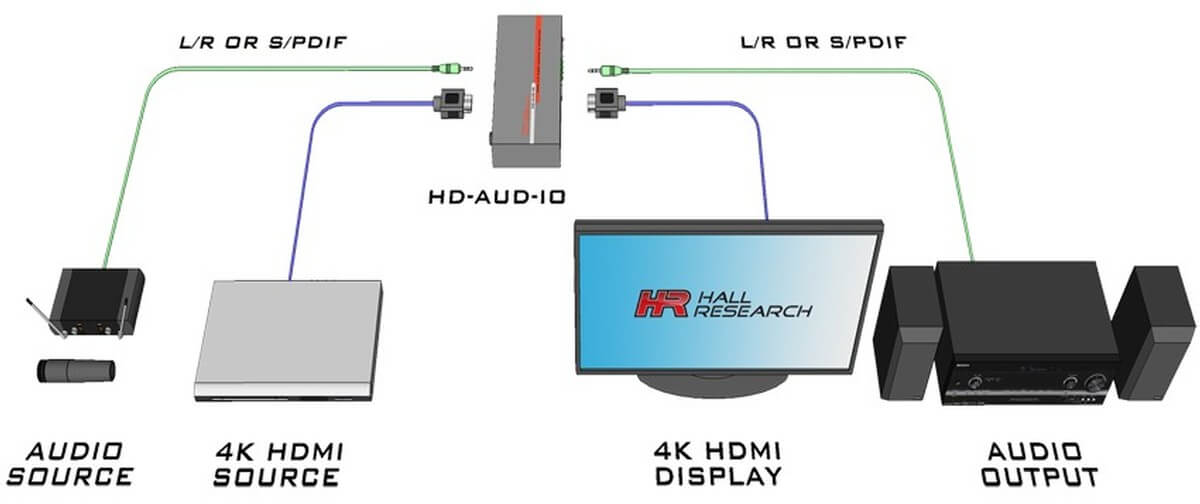 Home > Format Converters -> HDMI Audio De-Embedder -> Hall Technologies -> HD-AUD-IO HDMI 2.0 Audio Inserter, Extractor, EDID Manager and Equalizer