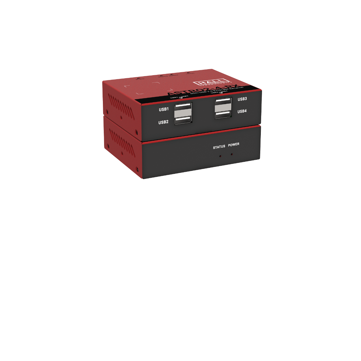 The HT-ASTRO2-4 is a 4-port plug-and-play USB2.0 extender via a single Cat5e/Cat6 cable. This extender hub kit transmits data from a PC to as many as four USB 2.0 peripherals up to 50m/165ft.