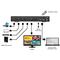 This unit supports 1080p Full HD, as well as supporting a variety of HDTV and PC resolutions and producing a scaled Full HD video output. The inputs can easily be selected with the individualized front panel push buttons. To control the device, inputs, and layouts the user(s) can utilize the included IR remote control, the front panel push buttons, RS-232, or PC-GUI. It comes backed by a three year warranty from Hall Research.