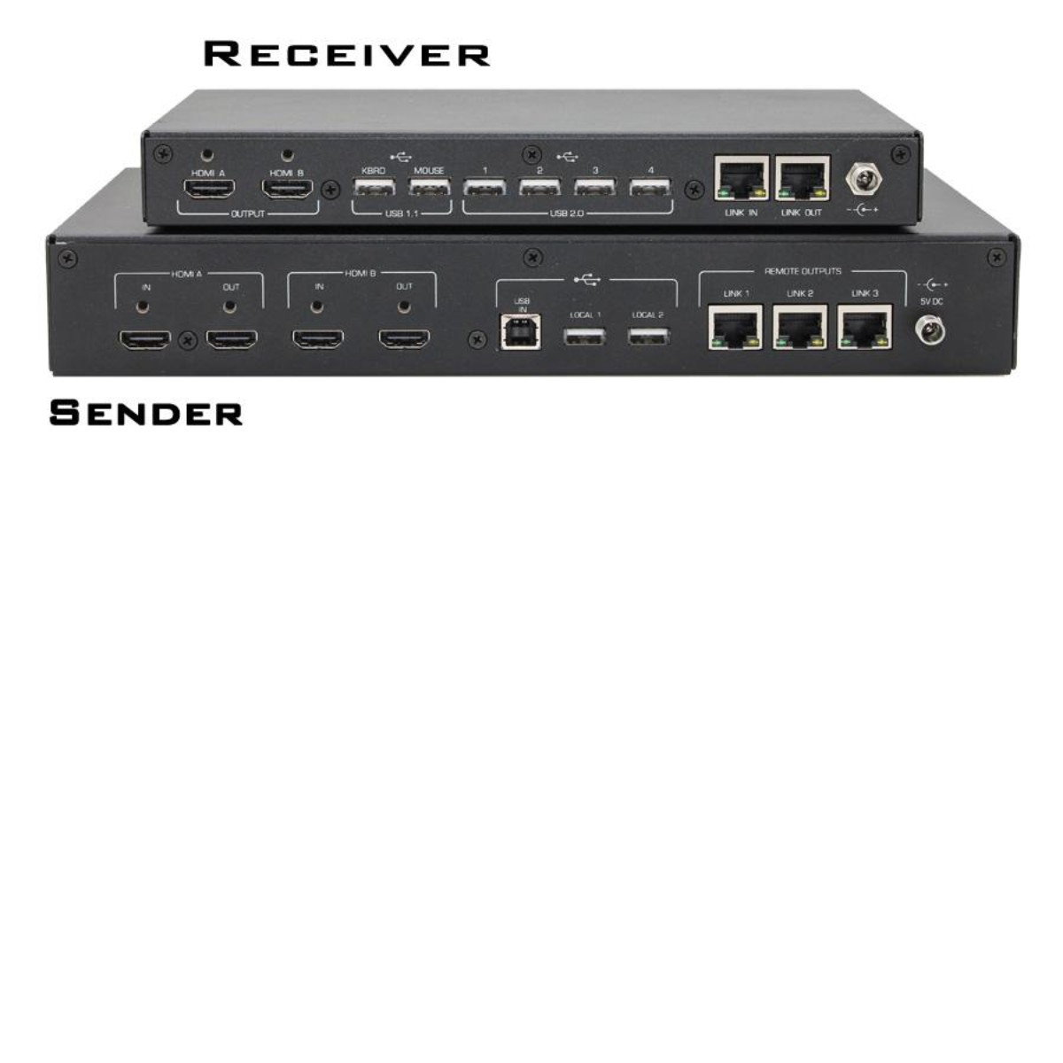 - Two video heads and one USB port extended over a single CAT6 cable up to 100m/328ft