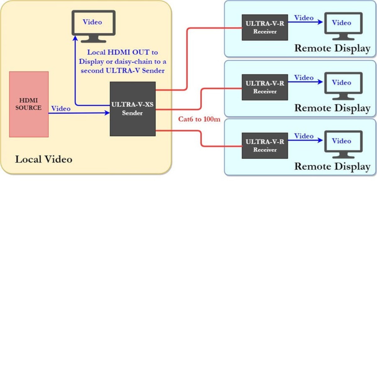 - Local HDMI outputs at all Senders to connect to a local display, or to daisy-chain a second ULTRA-V Sender