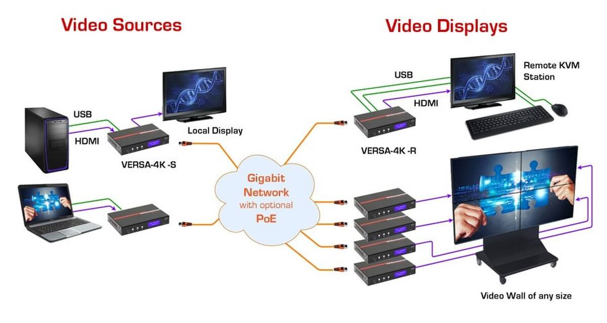 - Extend and switch multiple 4K HDMI video and USB on a simple Gigabit LAN