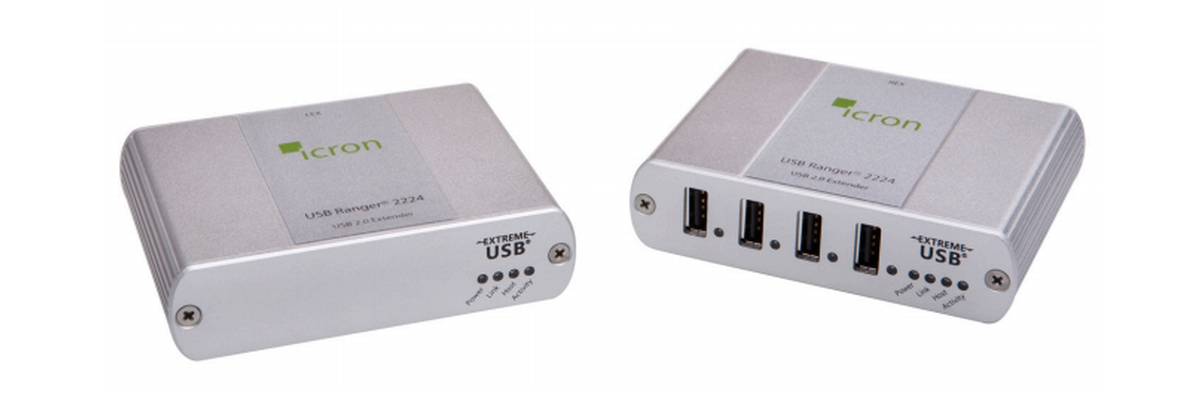 The USB 2.0 Ranger 2224 Four-port Multi-Mode Fiber Range Extender Kit (comes with a Tx and Rx). This USB 2.0 high speed extension kit has been designed to transmit and receive signals at up to 480 Mbps over 1640' of multi-mode fiber optic cable. The Ranger 2224 provides an integrated remote four port USB powered hub that delivers standard 500mA power. It will support all USB 1.1 and 2.0 device types from high-speed web cams, hard drives, printers, scanners, audio devices, touch screens, digital cameras and game controllers. This kit is a true plug-and-play solution as it requires no additional software drivers and is compatible with all of today's leading operating systems. Making this a perfect solution for industrial control, KVM extension capabilities, digital signage applications, home network integration, medical device connectivity, or in security, web camera access and control. Comes backed by a 2 year warranty from Icron Technologies.