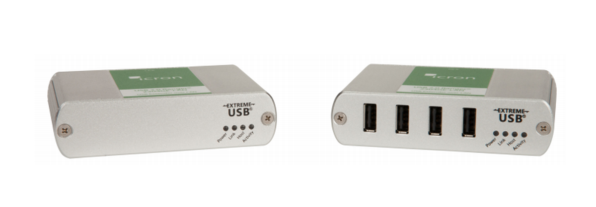 Featuring the USB 2.0 Ranger 2304GE-LAN 4-Port Ethernet LAN Extender Kit over Cat5e/6/7 from Icron Technologies. This extender kit has the ability to extend USB 3.0, 2.0, and 1.1 peripherals such as flash drives, keyboards, mice, interactive whiteboards, webcams and audio devices over CAT 5e/6/7 cabling or across a Gigabit Ethernet Local Area Network (LAN) up to 330'. It offers the ExtremeUSB suite of features such as plug-and-play abilities (no software drives required) and is compatible with all of today's leading operating systems. Up to 30 USB devices or hubs can be supported over LAN. Not only does this unit offer the ability to be used with existing cable infrastructure, it comes with a pre-paired networked configuration making for a faster installs and providing IT visibility. Both units come housed in a rugged metal enclosure, and are backed by a 2 year warranty from Icron Technologies.