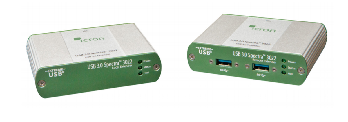 Additional features include two, very rugged, locking USB ports and a locking power connector, which makes this USB extender system suitable for industrial use as well. The Spectra 3022 features Icron's ExtremeUSB technology that allows for a transparent USB 3.0 extension, true plug-and-play functionality and the extender is compatible with all major operating systems (Windows, Mac OSX & Linux). ExtremeUSB technology also enables users to extend beyond the typical 9.8 (3m) cable limit for USB 3.0 peripheral devices, and allows signals to be sent up to 330' from the computer between the LEX (Local) and REX (Remote) unit.