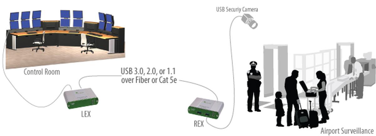 • REX (Receiver) Connectors: 2 x USB 3.0 Type A Locking Receptacles & 1 x Duplex LC Connector