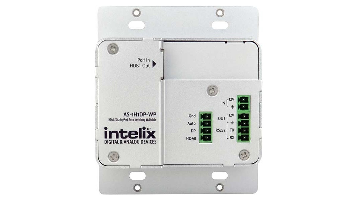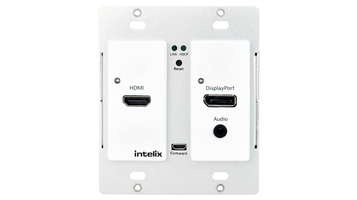 The Intelix AS-1H1DP-WP-W can handle your 1080P video and is HDMI 1.4 and HDCP 1.4 compliant. The wall plate is an ideal choice to handle your HDMI and DisplayPort needs and auto switch them out over HDBaseT.