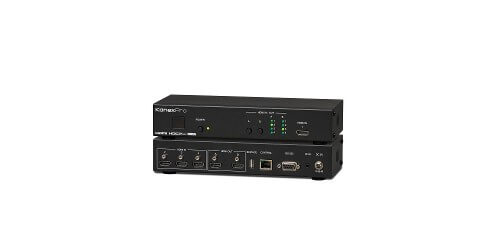 - Supports the matrix routing of four 18Gbps HDMI inputs to two 18Gbps HDMI outputs