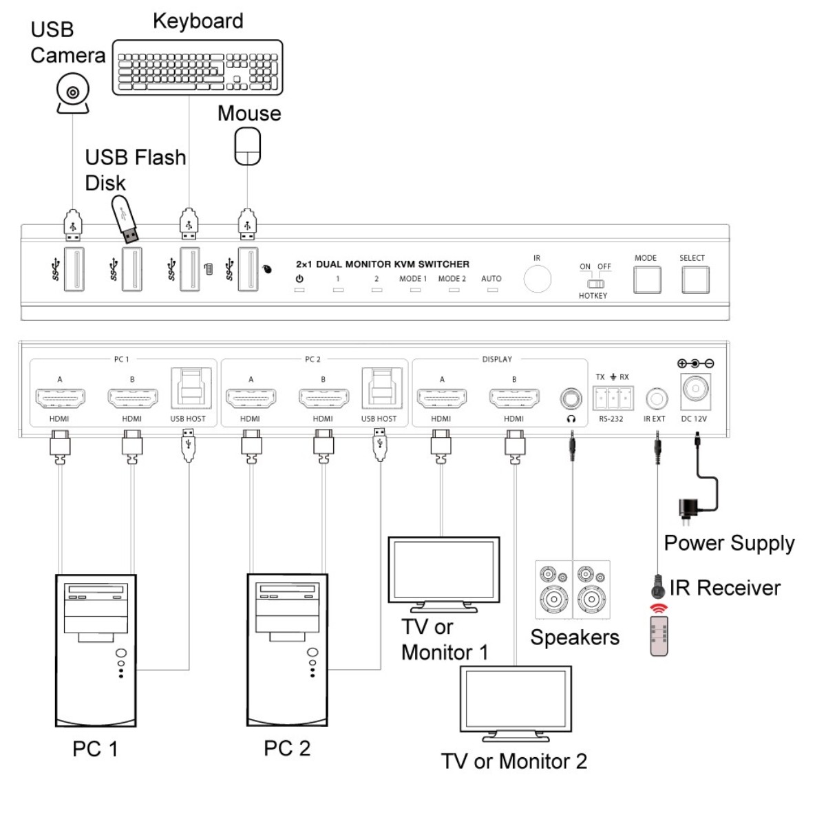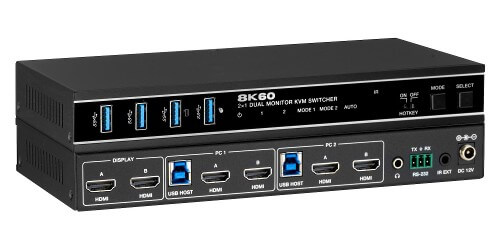 HDMI KVM Switcher 2x1 Dual Display 8K60