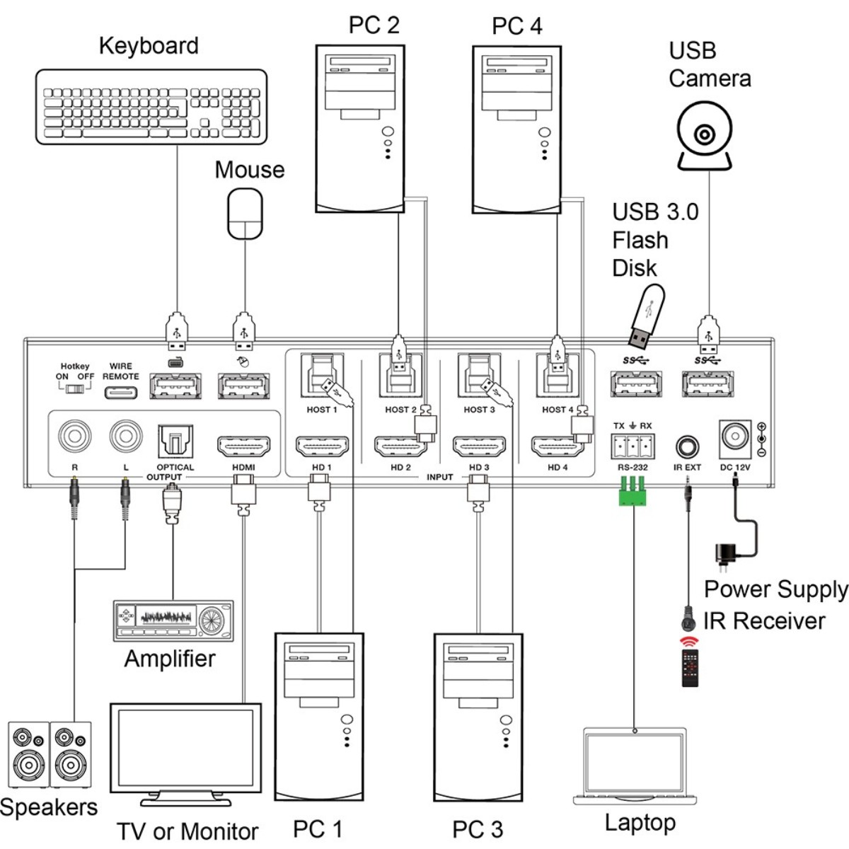The KanexPro KVM-4X1MV4K HDMI & USB 3.0 KVM Switcher was designed