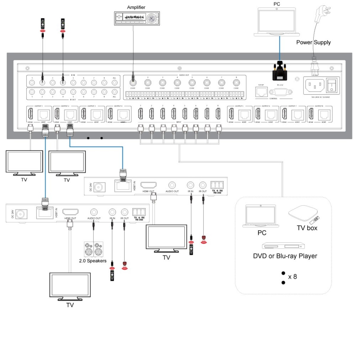 HDMI 2 0 Matrix 8X8 CAT6 150M 4K60