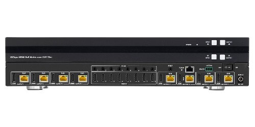 The Kanexpro MMX-8X8CAT- 70M is a versatile 8X8 switcher with HDMI and twisted pair input and output device. Additionally, it has simultaneous HDMI Mirror output for local distribution/ monitoring. An intuitive front panel with an OLED screen for easy setup and monitoring of input/output configurations.