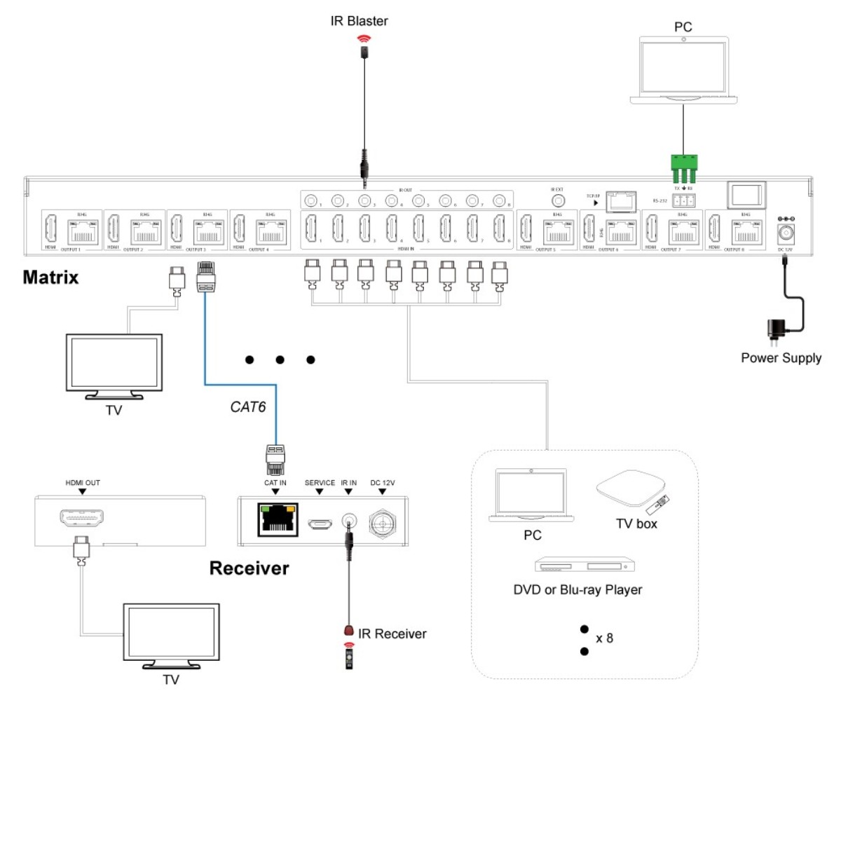 HDMI 2 0 Matrix 8X8 CAT6 70M 4K60