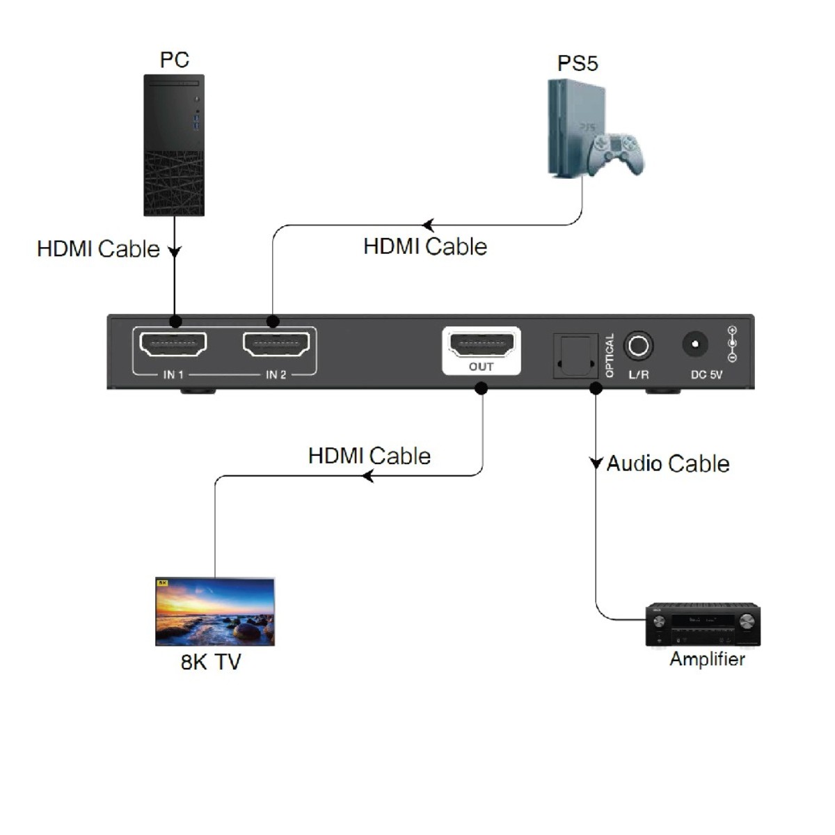 KanexPro HDMI 2x1 Switcher w Audio 8k