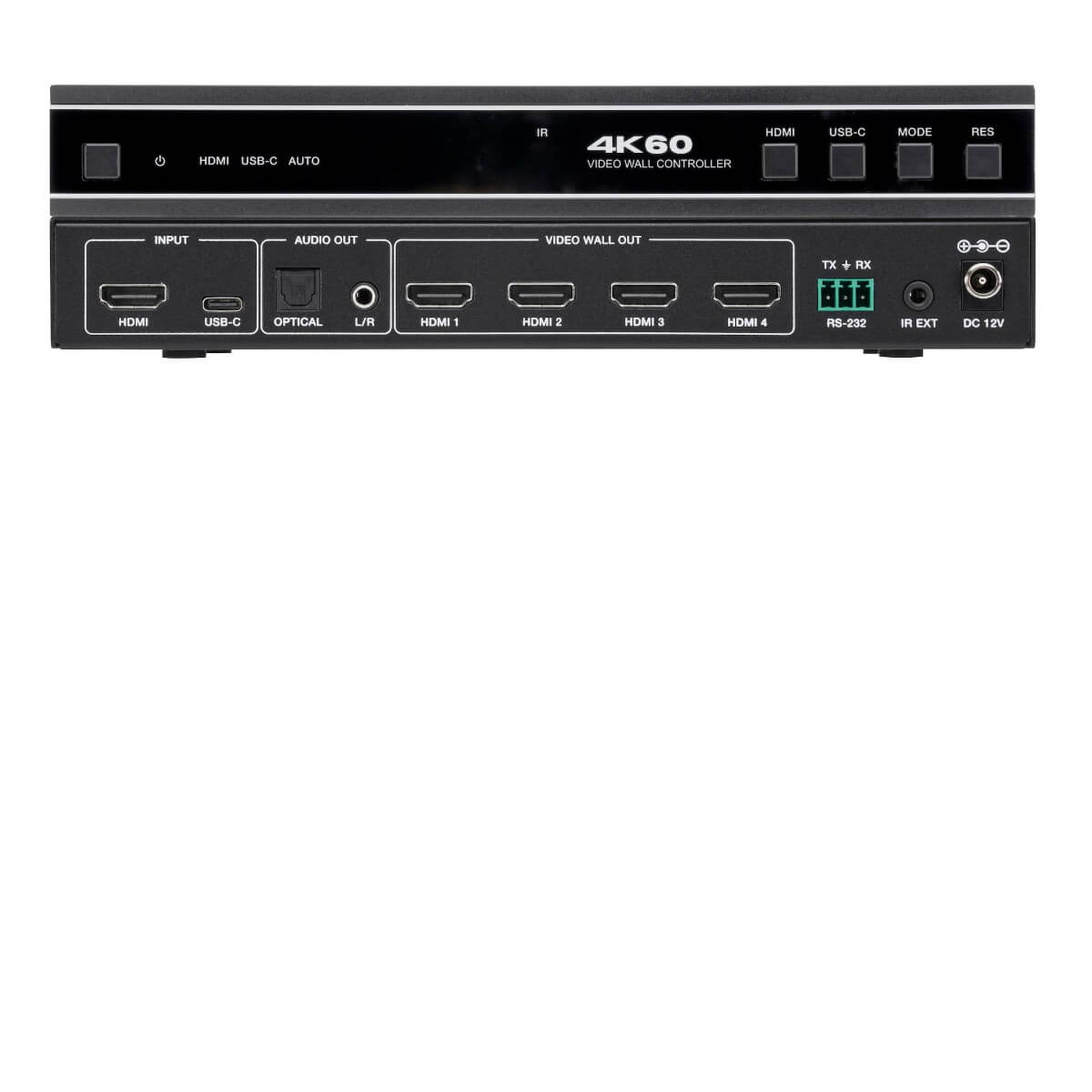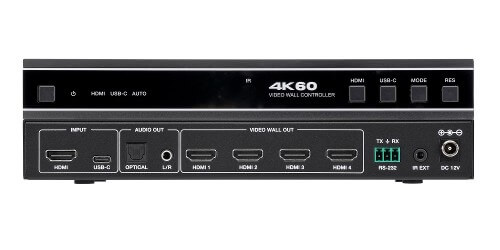 The KanexPro VW-HDUSBC1X4 is a versatile video wall processor designed for signal capturing, analogue-to-digital (AD) conversion, routing, and distributing signals across multiple displays while ensuring high-quality digital signal transmission. Its ability to handle 4K@60 4:4:4 resolution and multiple video wall modes makes it ideal for high-quality digital signage and display solutions. The inclusion of HDMI and USB-C inputs, along with optical and analogue audio outputs, provides a lot of flexibility for different setups.